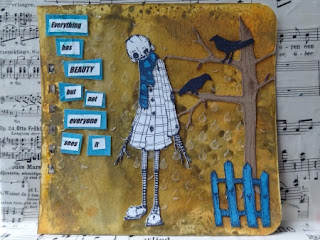 A lovely challenge again at Stampotique, anything goes. So I openend the drawers to surch a couple of stamps to make something. The pages I now use are becomming a little book. So nice all those chalenges in one book.